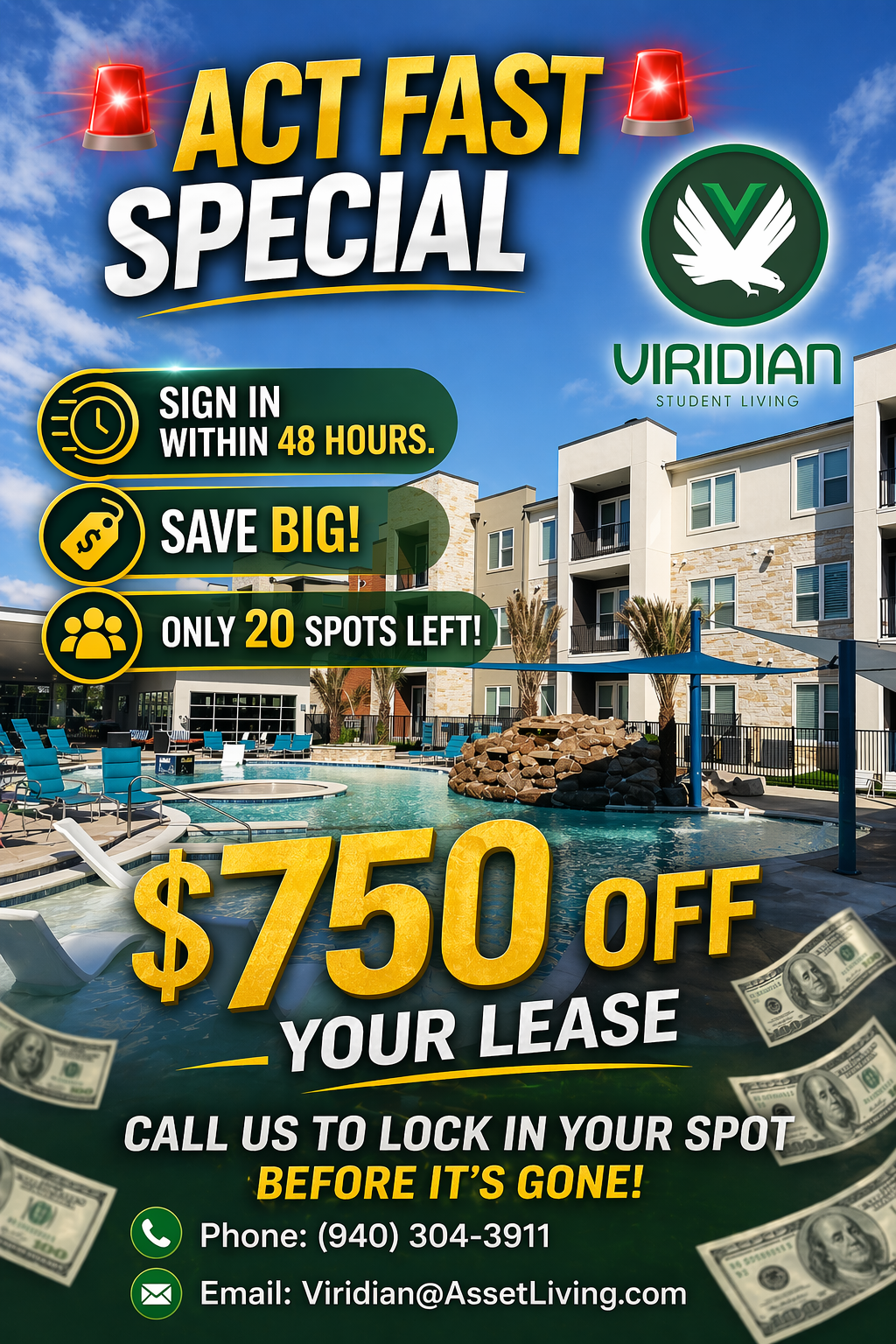 The Viridian is located just minutes from UNT. The neighborhood is filled with amazing restaurants, coffee shops, and retail stores. Everything is at the tip of your fingers when you choose to live Viridian!